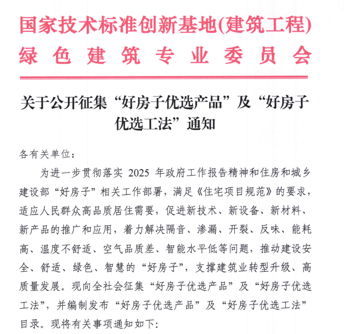 什么是“好房子”?国家正在征集这些技术与工法近日,一份关于征集“好房子优选产品及工法”的通知在建筑与建材领域引起关注。这份文件为我们清晰地勾勒出了未来“好房子”应该具备的模样,以及实现它的技术路径。今天,就让我们一起抛开商业视角,纯粹从行业发展的角度,科普性地解读这份文件。一、“好房子”的新标准:从“有得住”到“住得好”文件开篇明义,建设“好房子”的目标是满足人民群众安全、舒适